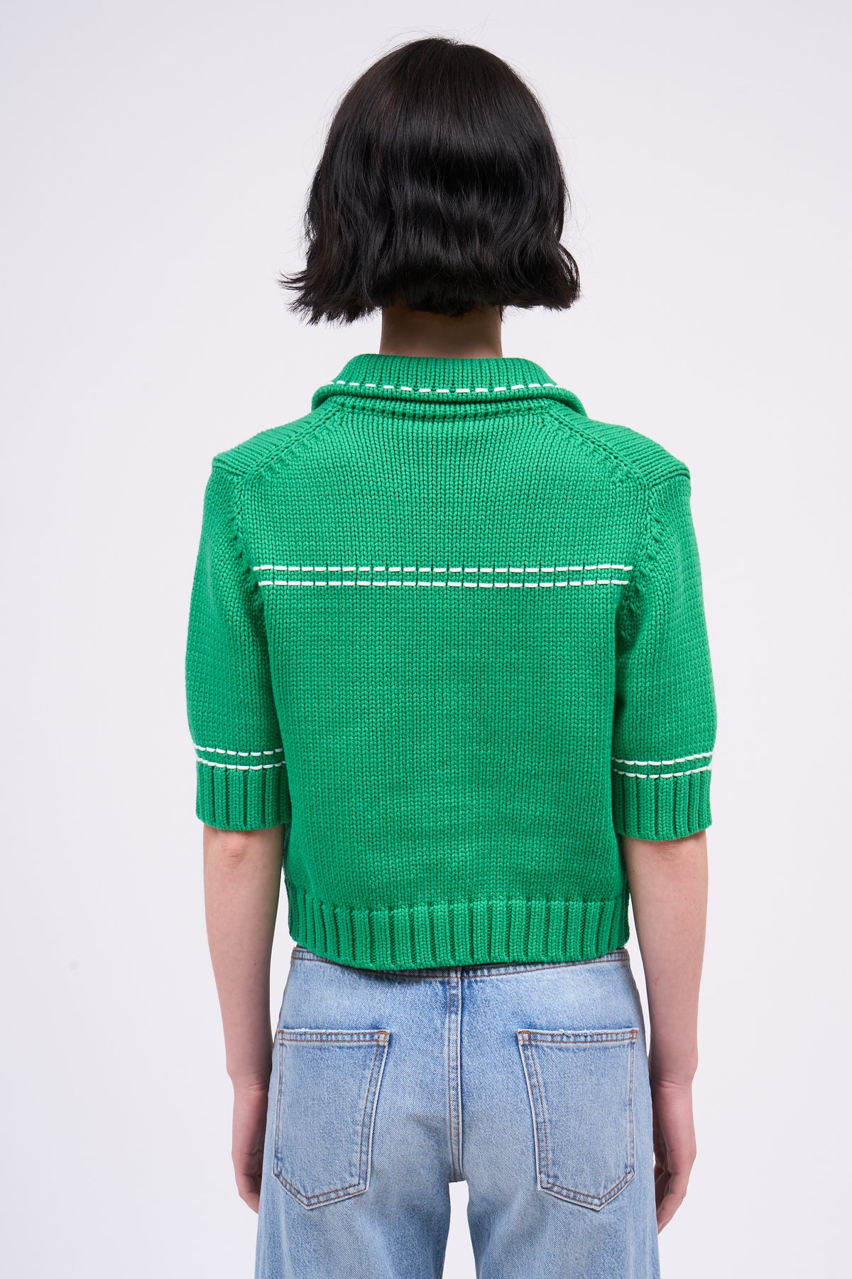 Cardigan court en grosses mailles de coton mélangé CHOCOLAT.