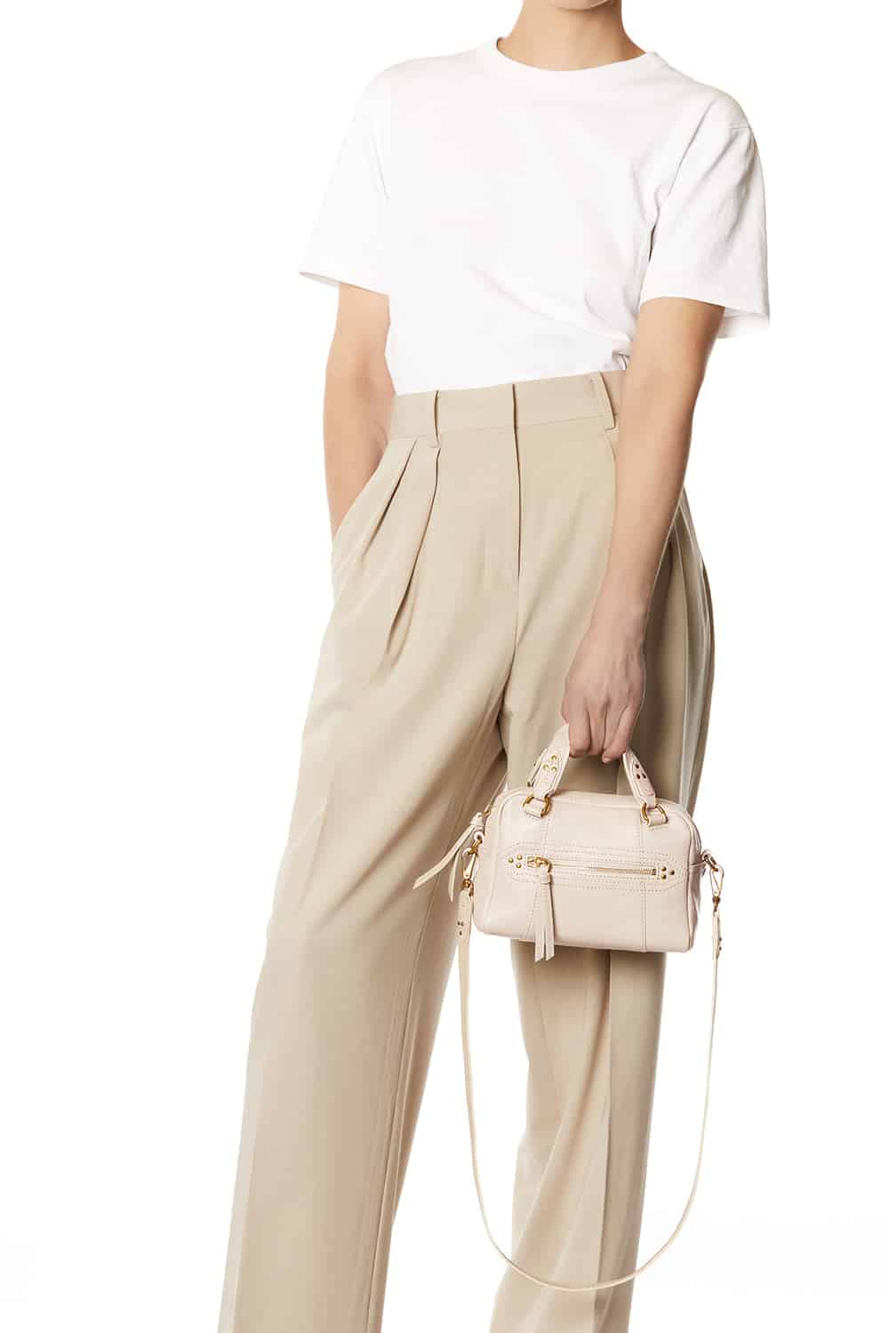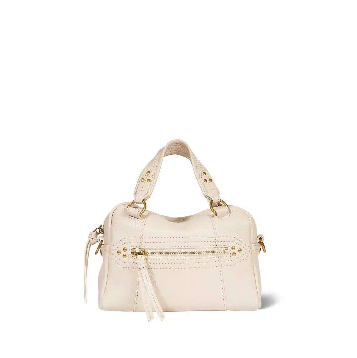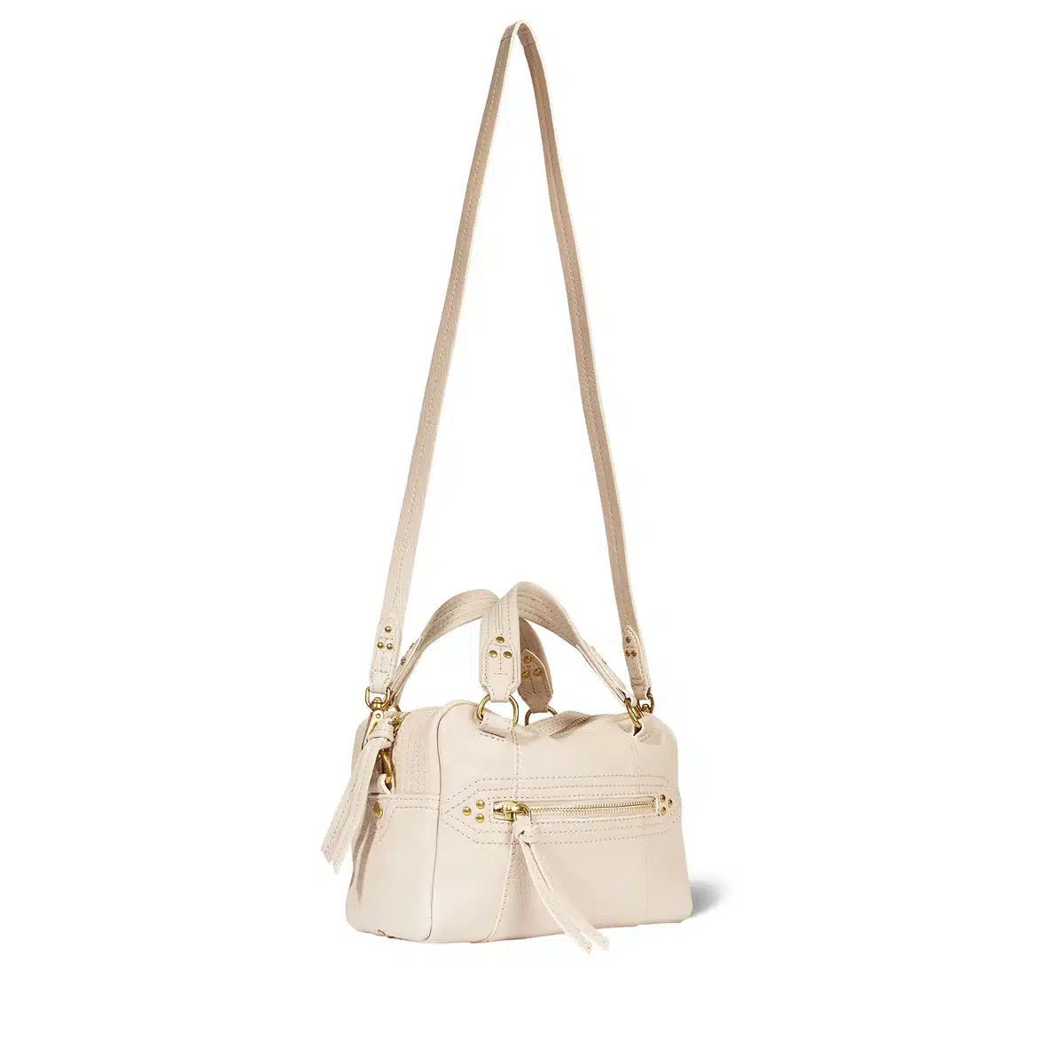 Sac bowling porté main ou en bandoulière. Bandoulière amovible, fermeture zippée avec des liens en cuir. 1 poche zippée à l’extérieur. 1 poche plaquée et 1 poche zippée à l’intérieur. Longueur des anses 22 cm Longueur bandoulière amovible non réglable 100 cm