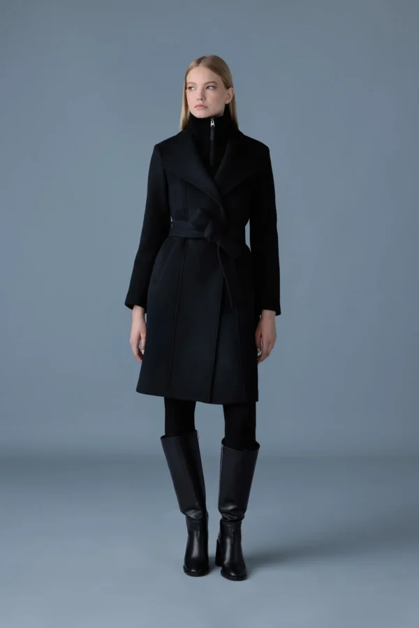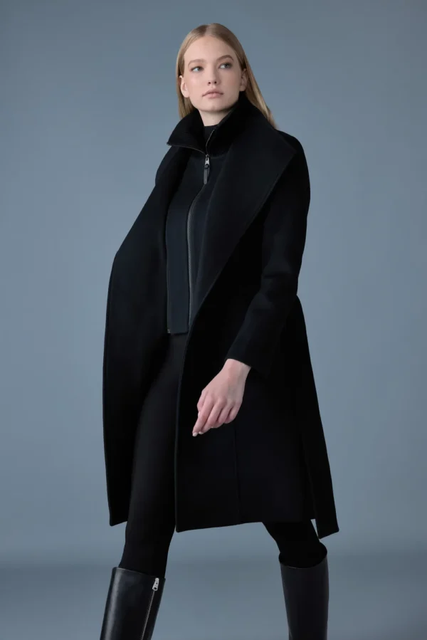 Manteau 2-en-1 en laine double face avec ceinture nouée