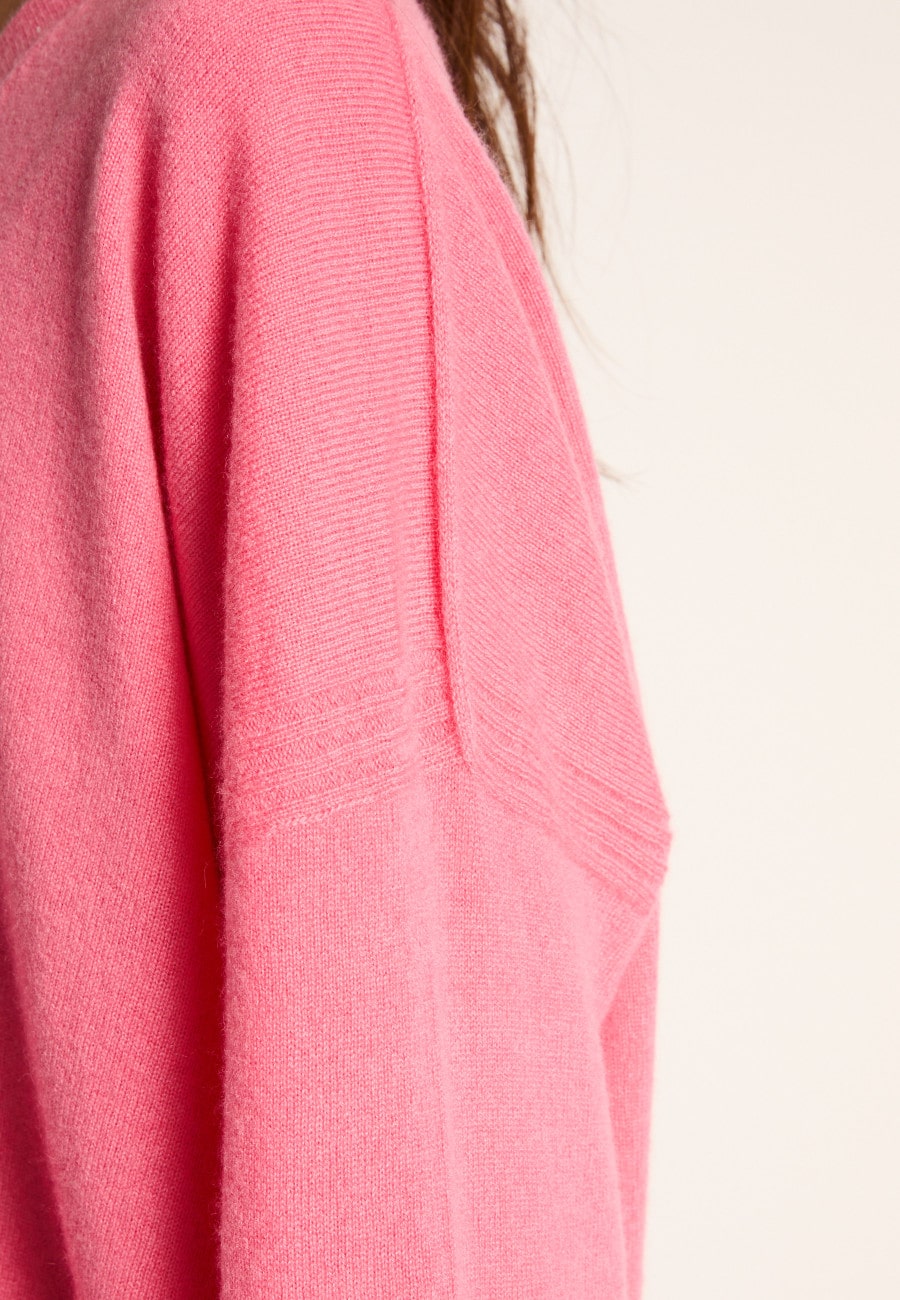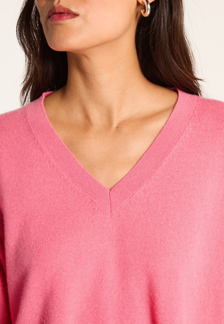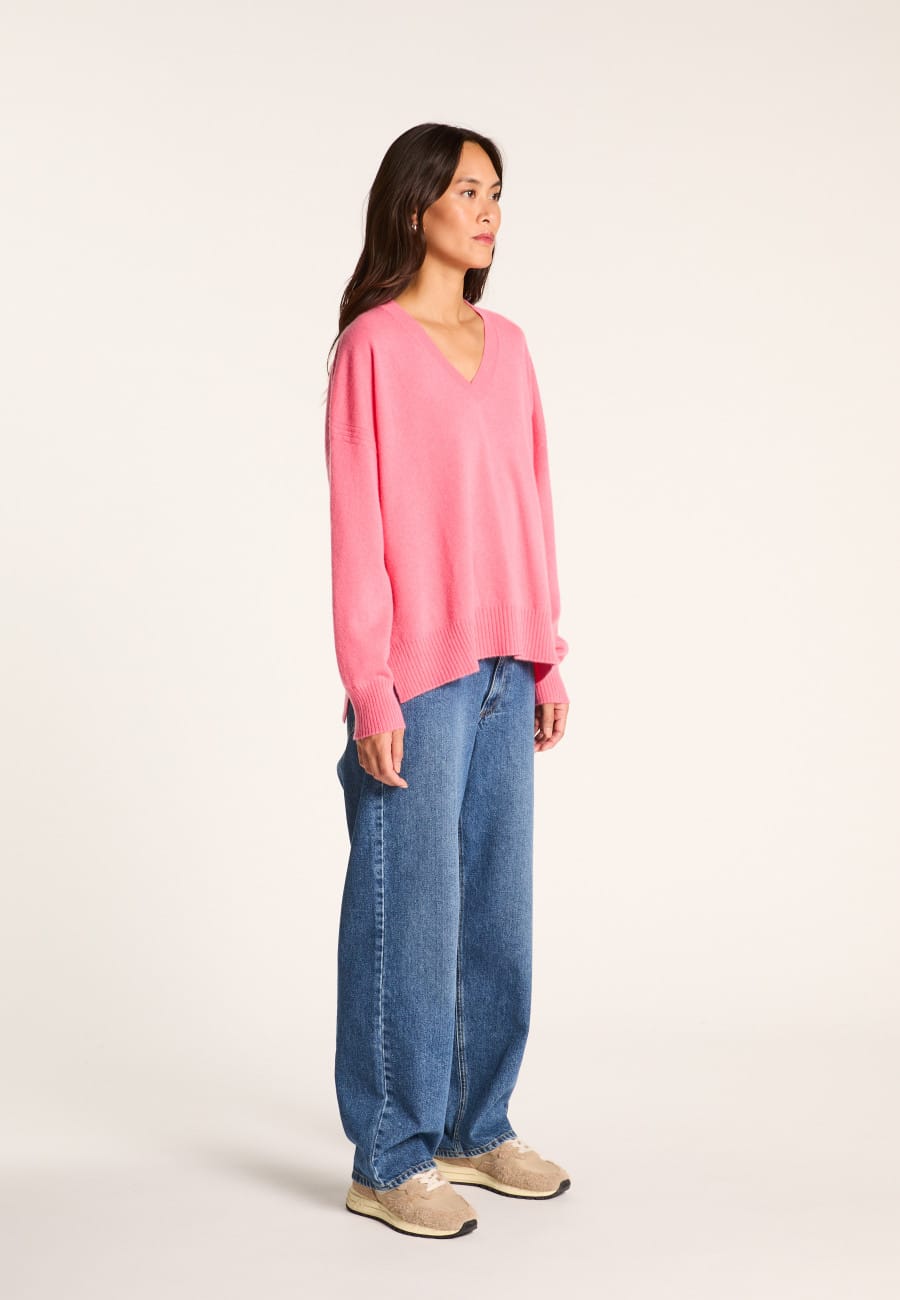 « Pull col V en cachemire, à la maille dense.