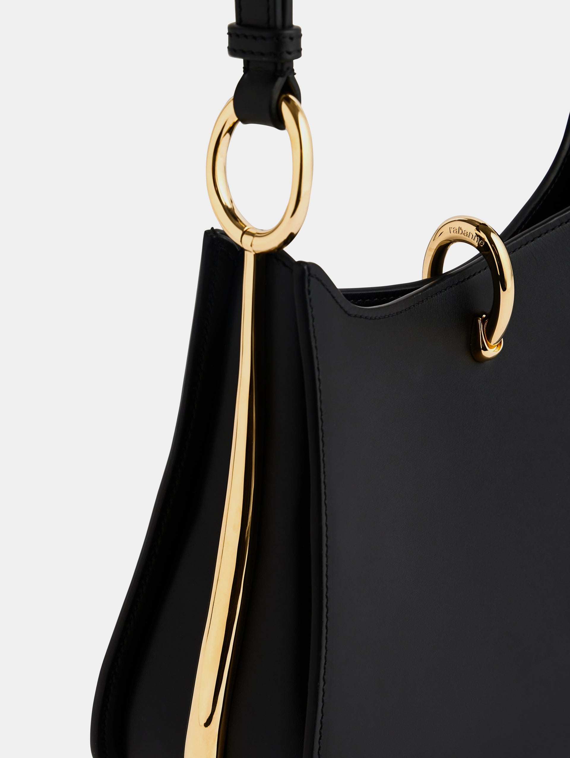 Fermeture par un anneau métallique coulissant inspiré de l’iconique anneau Rabanne.