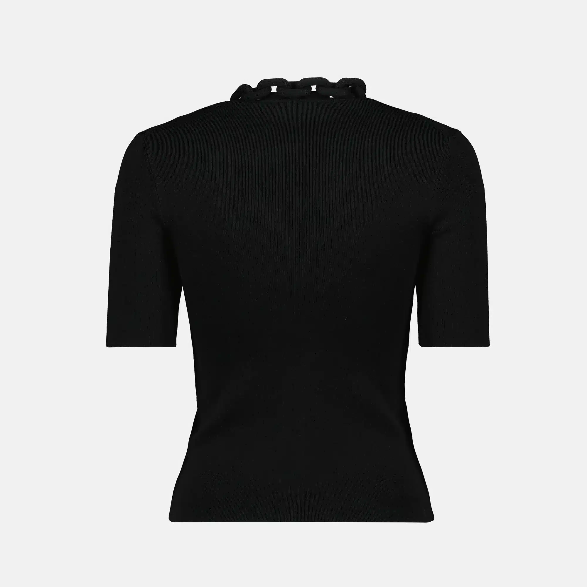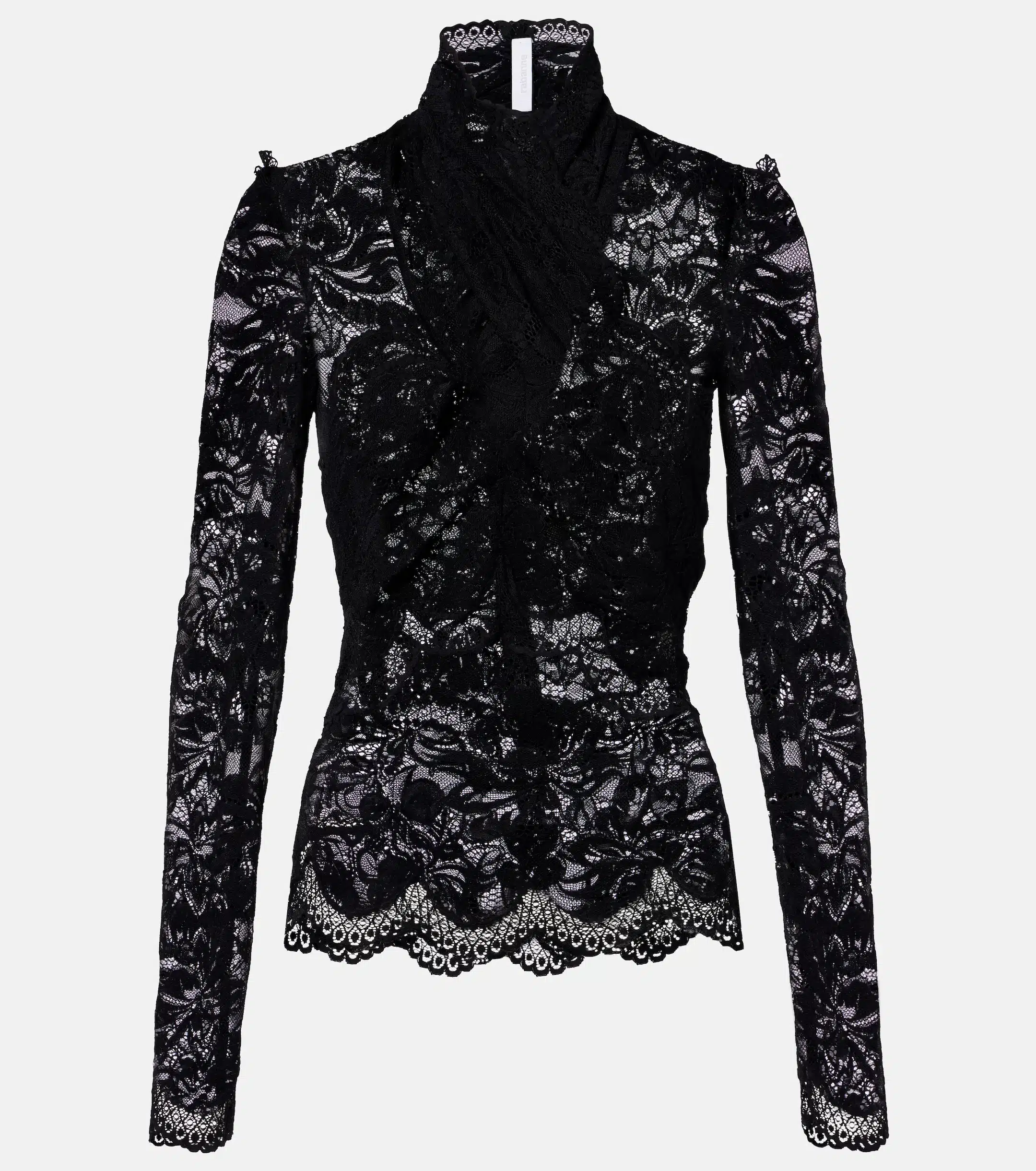 Célèbre pour ses créations glamour confectionnées à partir de matériaux inattendus, Rabanne continue de repousser les limites de la mode par son esprit innovant. Ce top semi-transparent est confectionné en dentelle extensible avec un motif floral sur l’ensemble et un détail croisé au niveau du col.