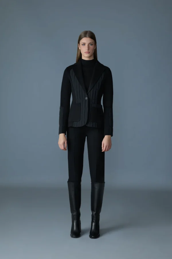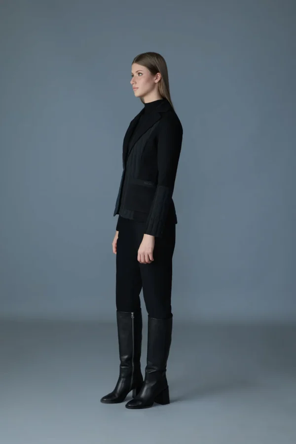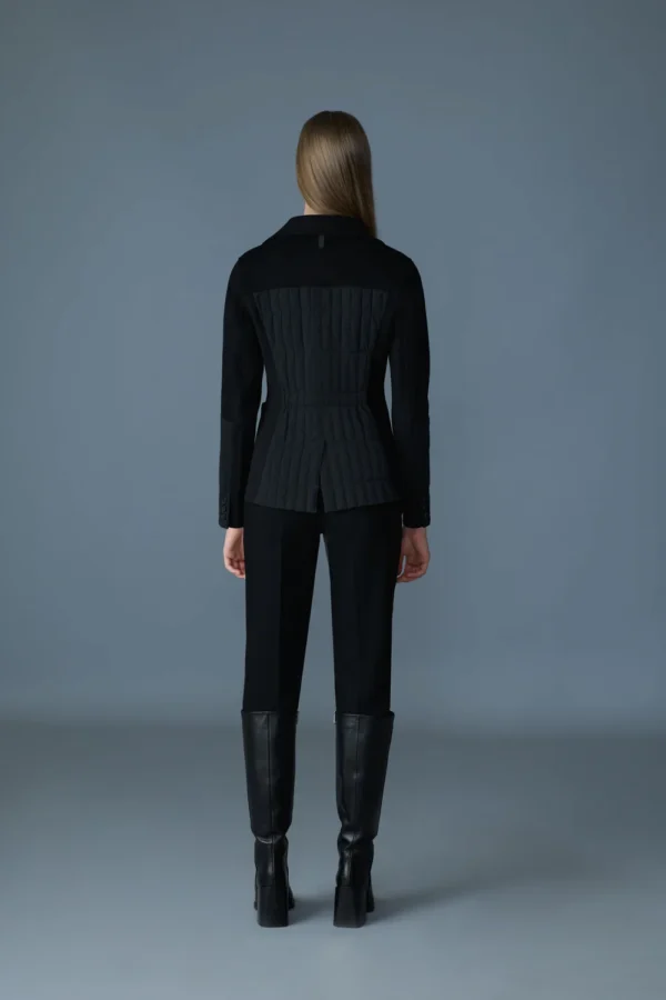 LEILANI est une veste sur mesure fabriquée à partir de laine double face et remplie de duvet recyclé certifié GRS. La silhouette mince est définie par un matelassage vertical tout au long, complété par des boutons et un col sur mesure. Il est doté de poches plaquées, d’une languette de manchette avec boutons et d’un détail élastique à la taille arrière pour plus de confort. L’évent au centre du dos permet un plus grand mouvement, et la veste est partiellement doublée pour plus de chaleur. Protection légère contre les éléments avec un style moderne.
